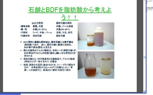 この資料は、下記からの継続です。 http://blogs.yahoo.co.jp/hirai476/15061013.html (その1) http://blogs.yahoo.co.jp/hirai476/15061187.html (その2) 最終回の3では、グリセリン活用法やグリセリン石鹸製造法、その他BDFのトピックス紹介です。 …